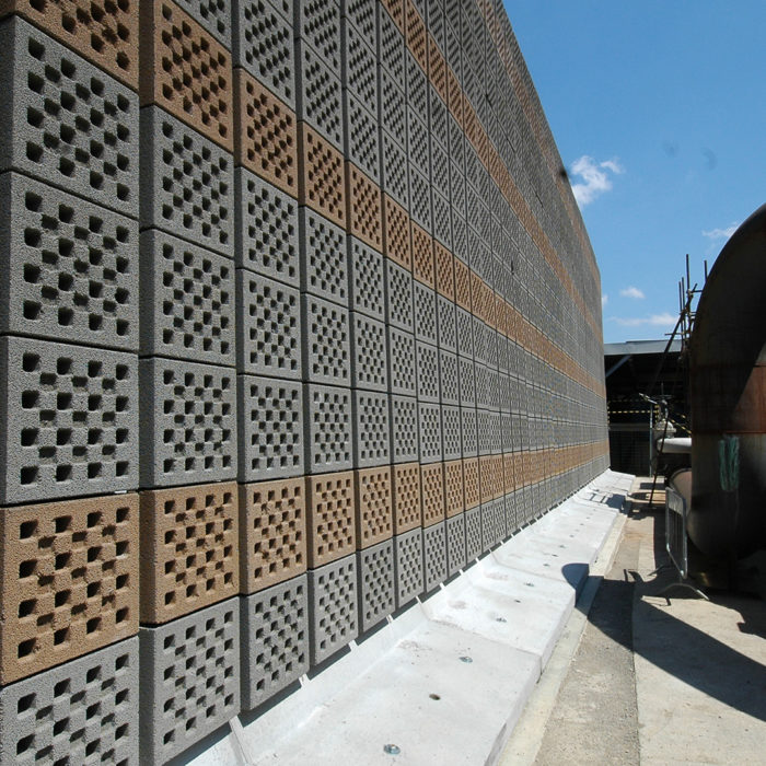 La barriera che ha potuto soddisfare la richiesta con il valore acustico imposto dal progetto è prodotta dalla Edil Leca spa con una doppia struttura, la prima portante prefabbricata in c.a autostabile e la seconda con elementi Fonoassorbenti denominati Fonoleca Quadro aventi le seguenti caratteristiche:
