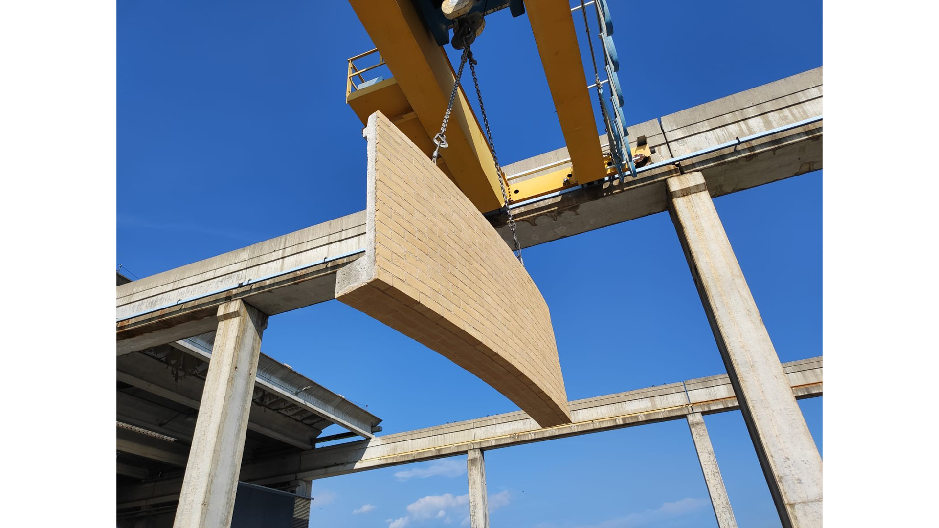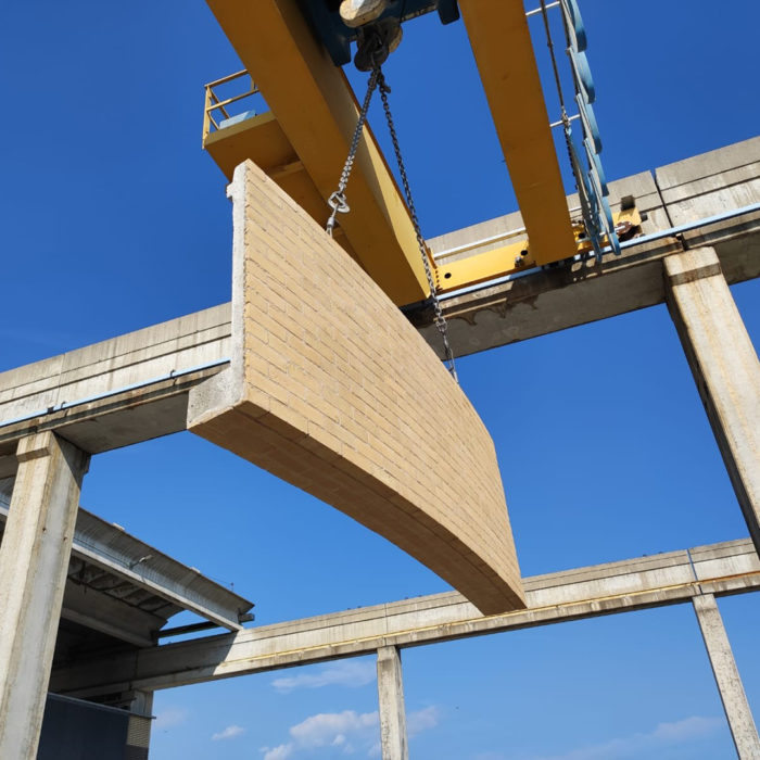 Sono pannelli di basso spessore che uniscono al mattone a pasta molle il calcestruzzo portante modellato su forme curve e anche a doppia curvatura.