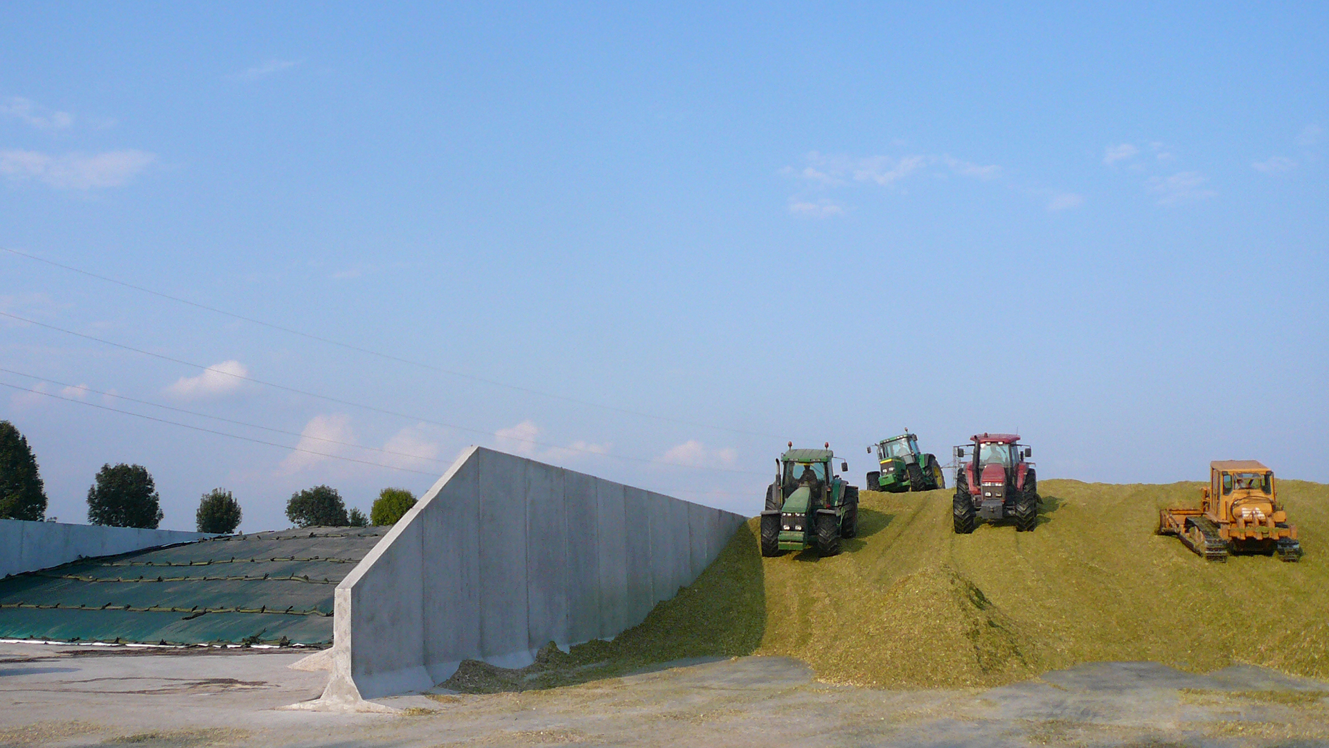 Silos orizzontali per lo stoccaggio di trinciati di cereali destinati alla produzione di biogas.